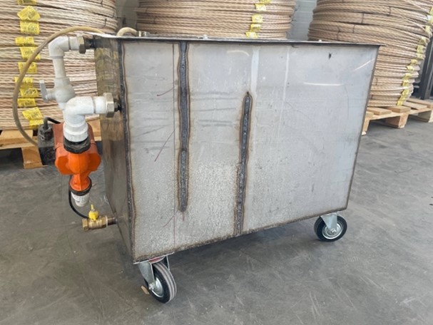 • Пропиточная ванна – оснащенная вкладкой из нержавеющей стали, объемом ~20 л – до 1.5–2 часов непрерывной работы технологической линии. Быстрый съем для технологической очистки. Также оснащена системой подогрева эпоксидно-полимерного связующего в пропиточной ванне для увеличения время жизни готовой смеси.